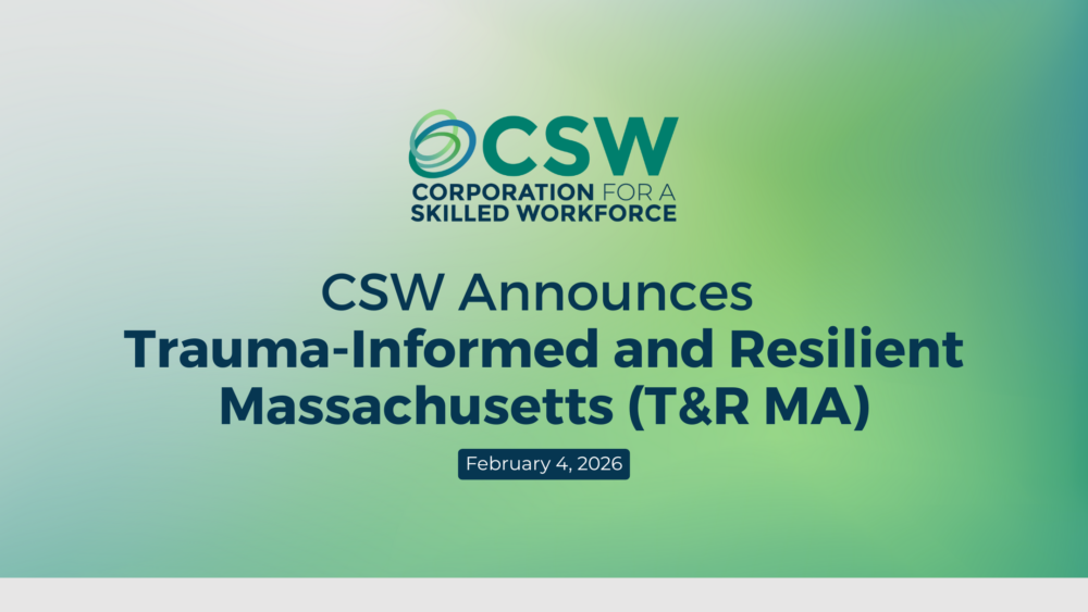 Massachusetts, February 4, 2026: Corporation for a Skilled Workforce (CSW) is partnering with the MassHire Department of Career Services (MDCS) and the Massachusetts Workforce Association (MWA) to provide training and coaching to the MassHire workforce development system through the Trauma-Informed and Resilient Massachusetts (T&R MA) program which will run from July 1, 2025 to September... read more →